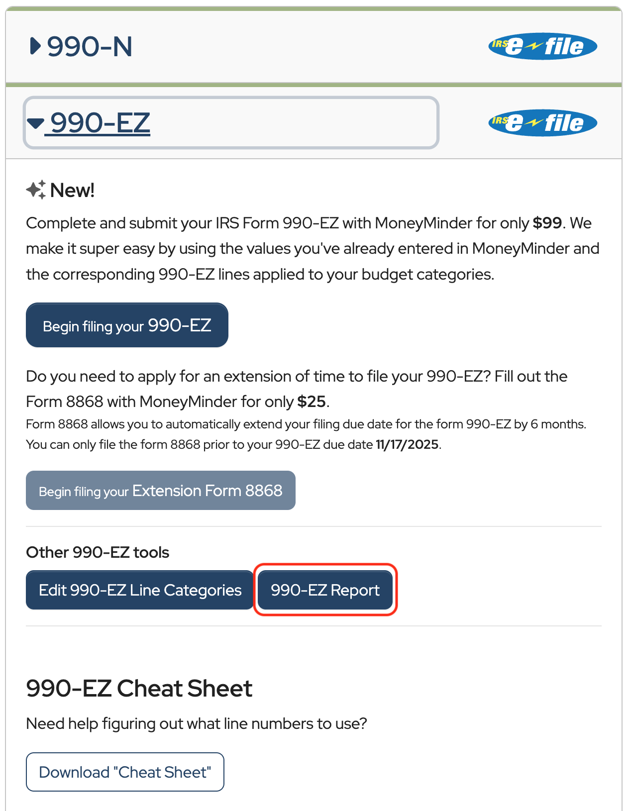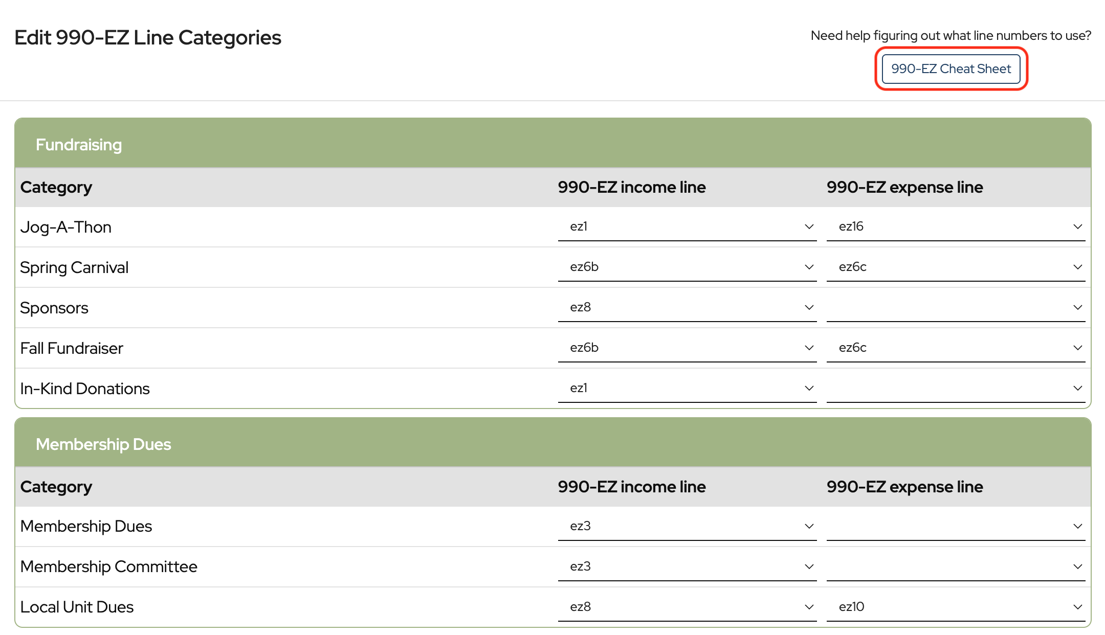 For help figuring out what line number a budget category falls into, download the 990-EZ Cheat Sheet.