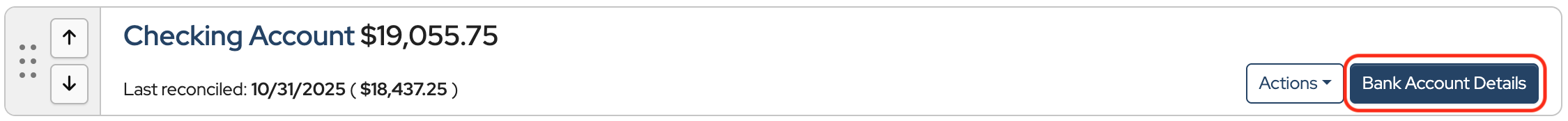 Click Bank Account Details to the right of the bank account.