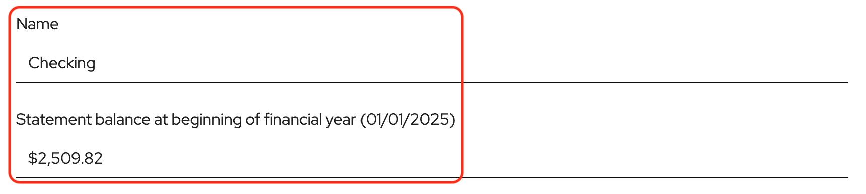 Enter the statement balance at the beginning of the financial year. This should be taken directly from the bank statement.