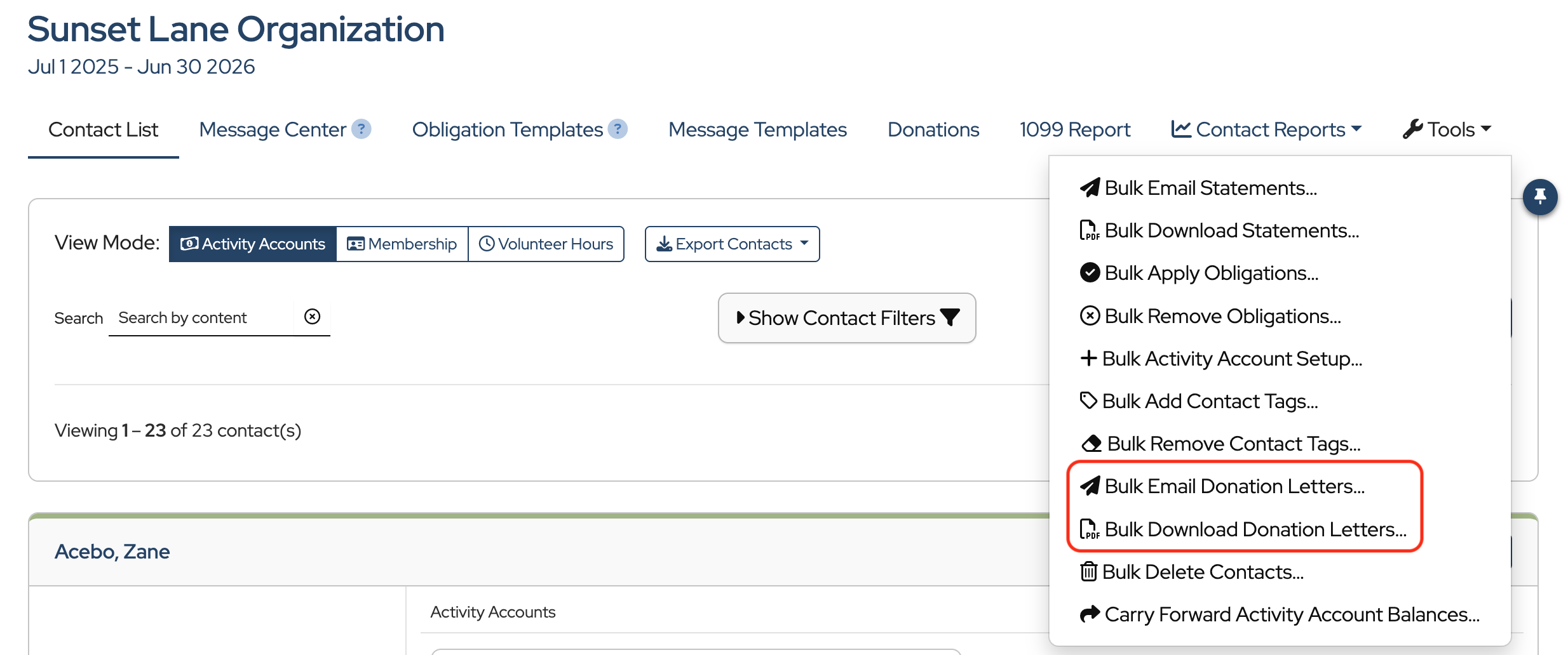 Now, let’s walk through how to email or download donation acknowledgment letters in bulk.