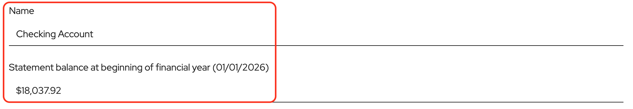 Name your new account and add the starting balance from the beginning of your financial year. Be sure to take that information directly from your bank statement.