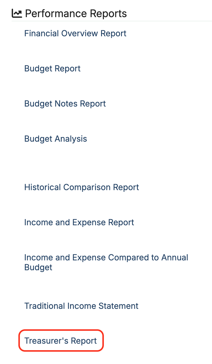 To find it, click Reports in the sidebar, then scroll down to find and click on Treasurer’s Report.