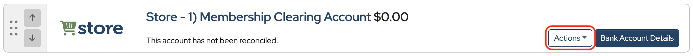 Click Actions to the right of either the Store Clearing Account or the bank account.