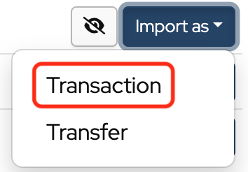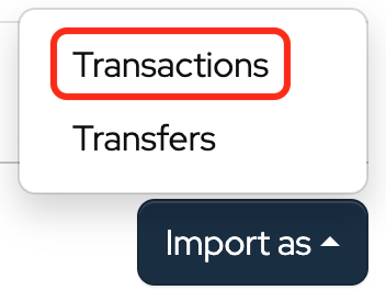 Click Import as and choose Transactions from the dropdown to bulk import withdrawals or deposits.
