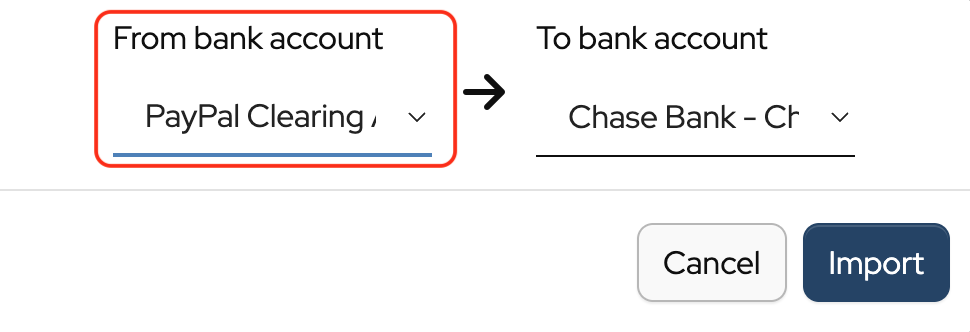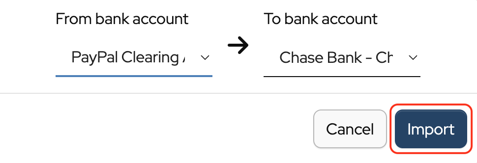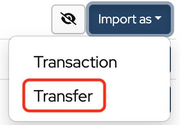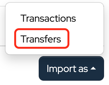 Transfers between bank or merchant accounts can be imported by clicking Import as and selecting Transfer from the dropdown.