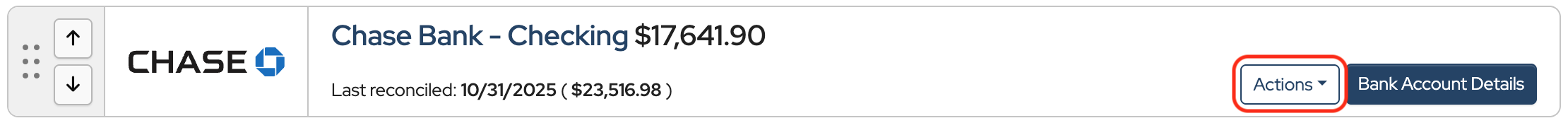 Click Actions to the right of the bank account.