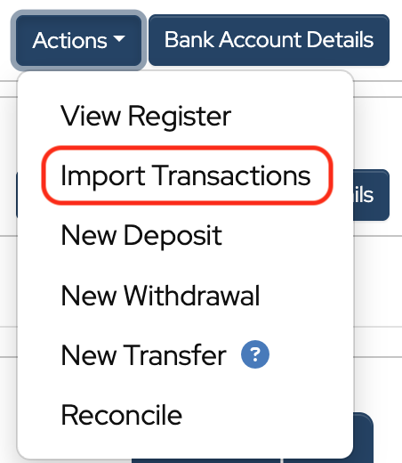 Select Import Transactions from the dropdown: