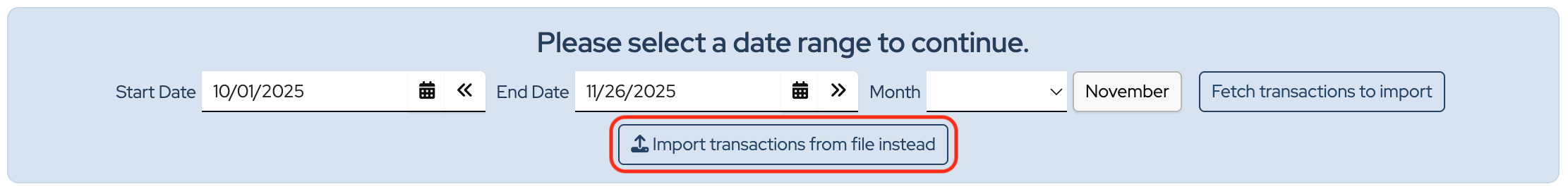 Click the Import transactions from file instead button: