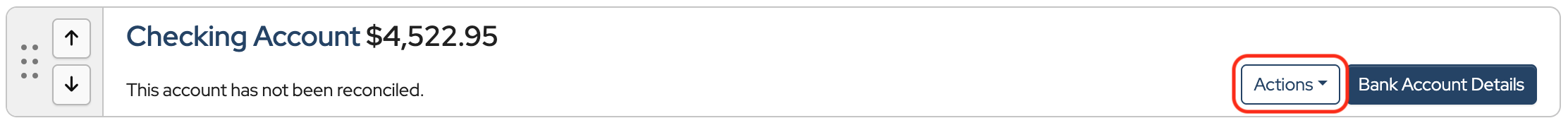 Click Actions to the right of the bank account.