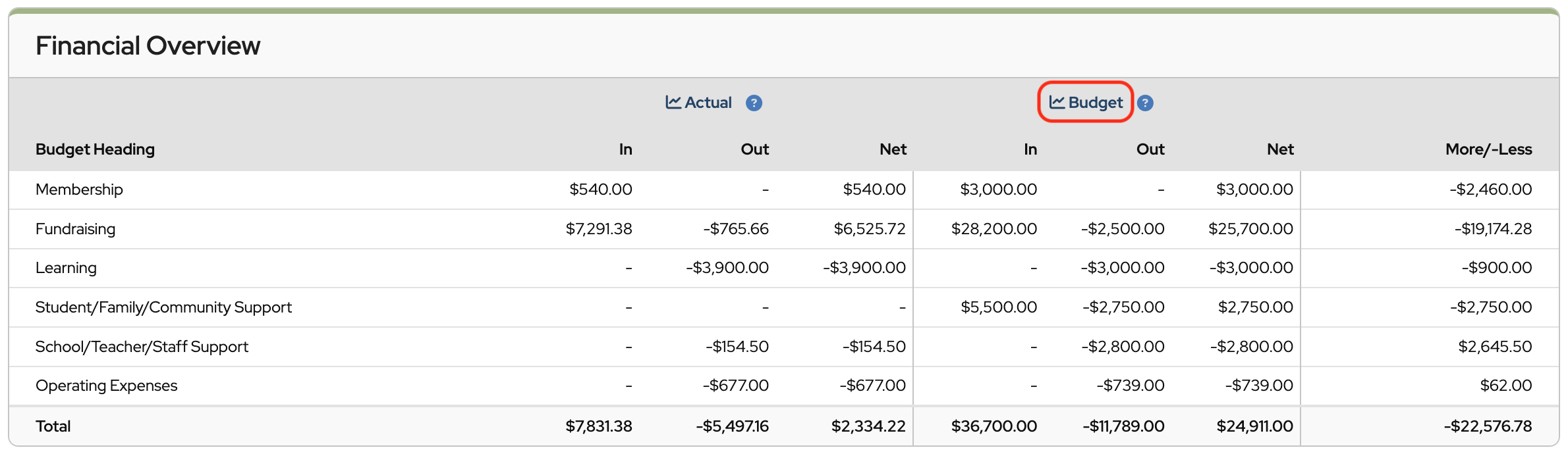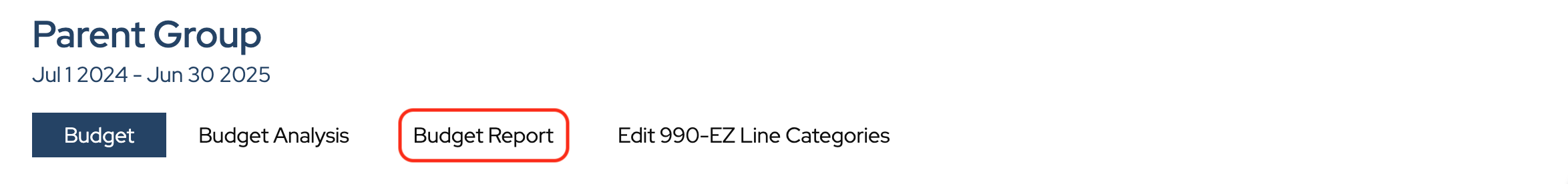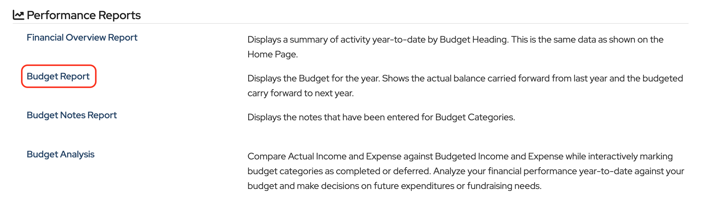 Then click Budget Report in the Performance Reports section.