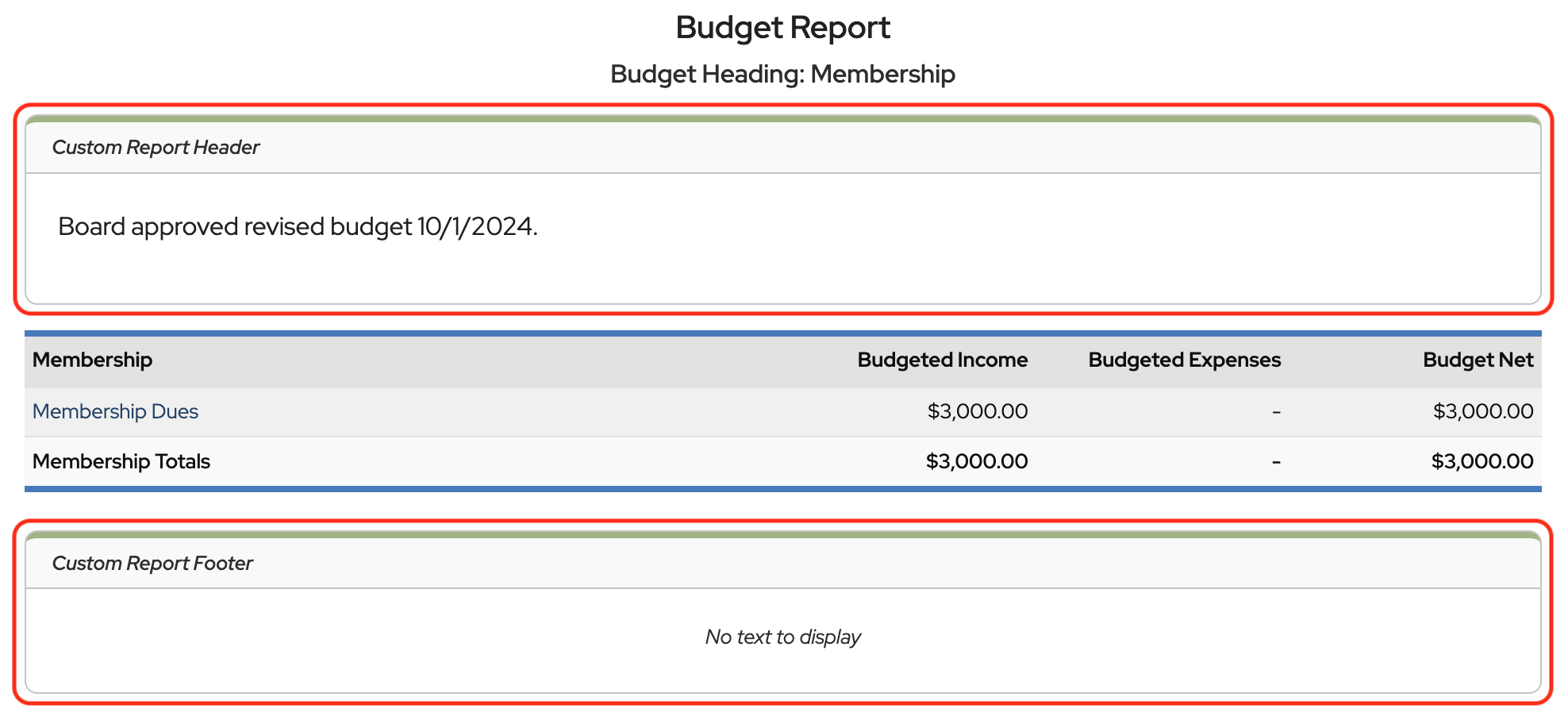 To add more details, information can be entered into the Custom Report Header and/or Custom Report Footer sections.