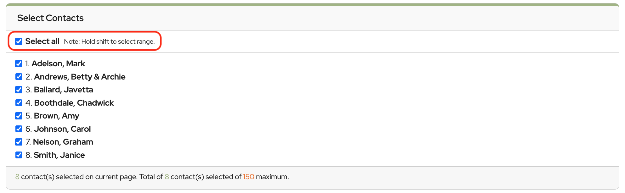 Click Select All (deselect any contacts you don’t want to include or hold shift to select a range)